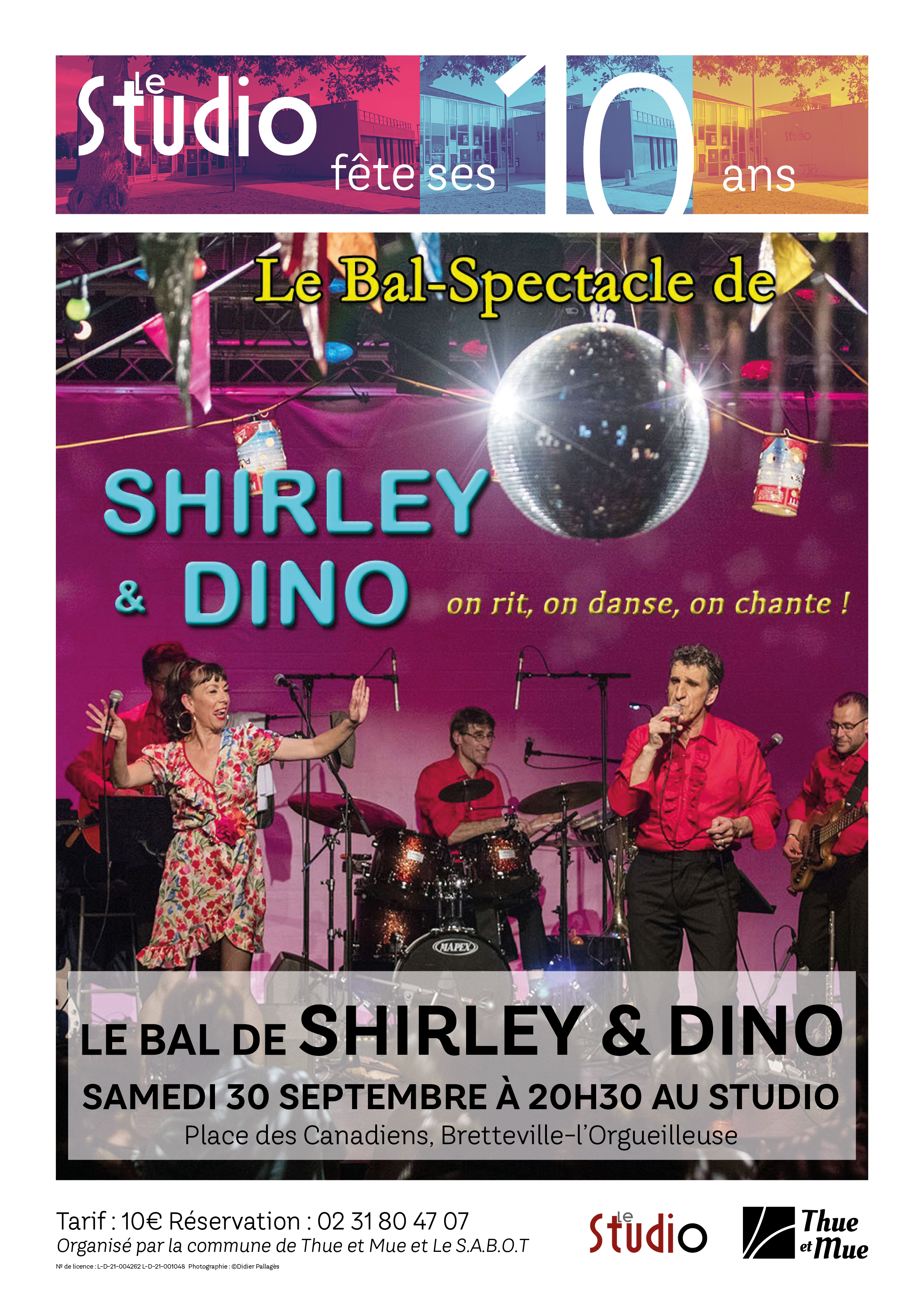 Pour fêter les 10 ans du Studio, un bal spectacle de Shirley & Dino est proposé le samedi 30 septembre à 20h30 au Studio, place des Canadiens à Bretteville-l'Orgueilleuse.